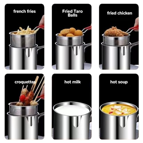 【Küchenutensilien】Diese Fritteuse mit Korb ist ein unverzichtbares und praktisches Werkzeug in der Küche, besonders sinnvoll für Chips, frittiertes Huhn, frittierten Fisch und andere frittierte Lebensmittel zu Hause. Ausgestattet mit einem Filterkorb, ist es bequem und ermöglicht es Ihnen, köstliche frittierte Lebensmittel leicht zu genießen, was Ihr tägliches Leben bequemer macht!