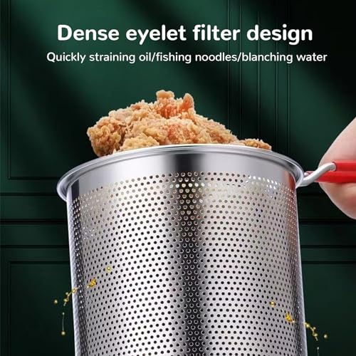 【Sicheres Design】Sicherheitsdesign Frittierkorb Griff ist ergonomisch, bequem zu halten, einfach zu bedienen, effektiv zu unterbinden Verbrühungen. Das Netzkorb-Design kann zum Kochen, Braten, Abtropfen und Auffischen von Zutaten verwendet werden, und das abnehmbare Griffdesign macht es bequemer im Kochprozess.