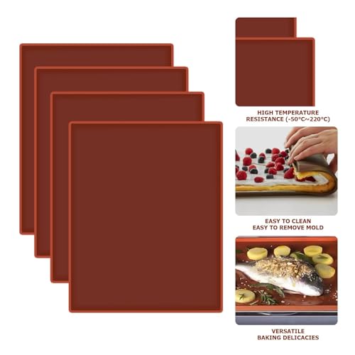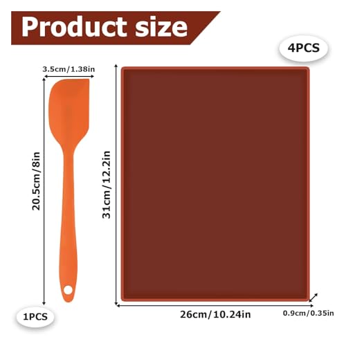 【Perfekte Größe】Unsere Silikon Dehydrator Blätter misst 31 cm x 26 cm und eignet sich stattdessen Metalltabletts, die größer sind denn dieses Silikonpad. 4 Antihaft-Trockenblätter reichen stattdessen Ihre Verwendung allesamt.