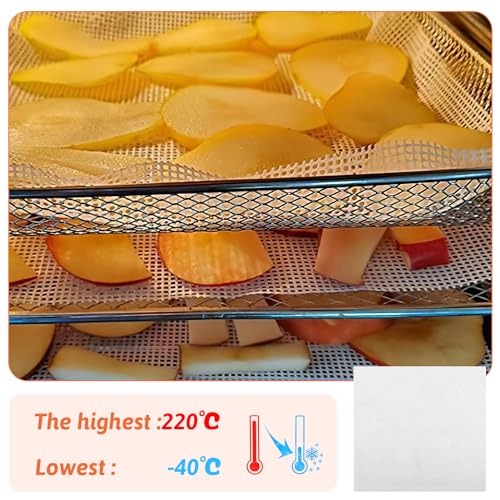 👁️🗨️【Effizientes Abschwächen und Optimale Luftzirkulation】Die zahlreichen Löcher in den Dörrblättern umsorgen eine gleichmäßige Verteilung des Dampfes und ermöglichen eine optimale Luftzirkulation. Dadurch werden Ihre Lebensmittel gleichmäßig und schonend gedämpft, was zu köstlichen Ergebnissen führt. Ideal für die Herstellung von Obstleder, Backwaren, Jerky und vielem mehr.