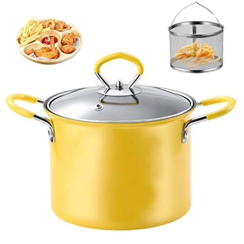 AOpghY Fritteus-Topf 2L Edelstahl Mini-Friteuse-Topf mit Korb, Deckel und Anti-Scenen-Silikongriff Japaner Fritteuchsen-Topf für Zuhause, Tempura-Chips, Pommes, Fisch und Hühnchen-Friteuse-Topf