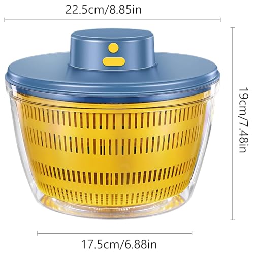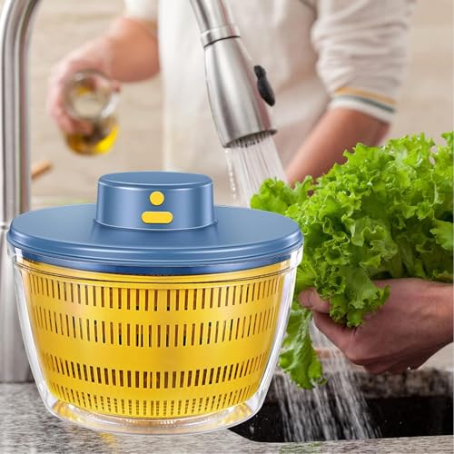 Automatischer Salatschleuder, USB Drahtloser 4000ml Salad Spinner Dörrautomat für Obst Gemüse,Salatschüssel zum Servieren, Schnell Entwässern Küchenhelfer in trendiger Farbe, Lange Bereitschaft,Blau