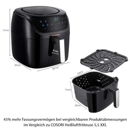 45% mehr Fassungsvermögen daneben gleichen Produktabmessungen im Abmachung zu COSORI Heißluftfritteuse 5,5l XXL