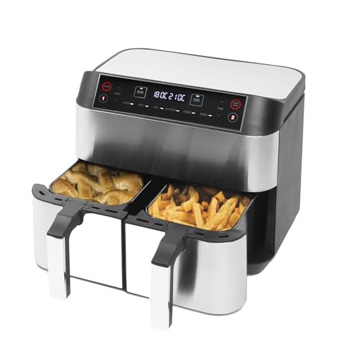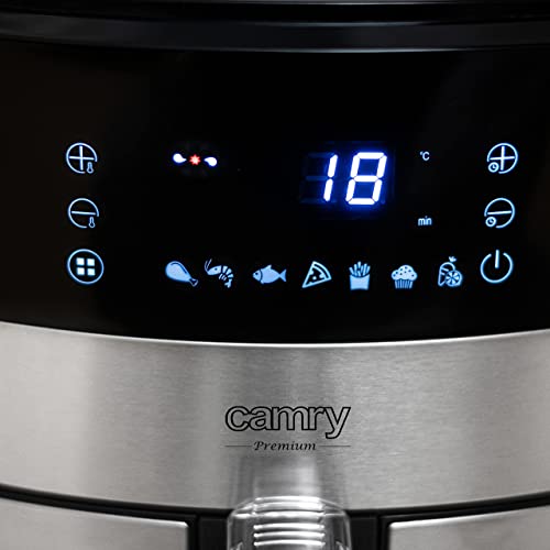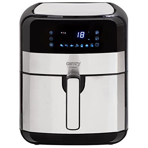 Camry CR 6311 Heißluftfritteuse 5L, fettfreie Fritteuse mit 9 Programmen, Heißluftfritteuse mit feuerfestem Griff, Airfryer mit Antirutschfüße, Temperaturbereich: 80–200 degreeC. ✔️ DIE AIRFRYER-FRITTEUSE CAMRY 6311 EIGNET SICH PERFEKT FÜR ALLE, DIE GERNE KOCHEN UND ORIGINELLE GERICHTE MIT VERSCHIEDENEN TECHNIKEN ZUBEREITEN WOLLEN. Heutzutage bewähren sich solche Geräte nicht dagegen bei Pommes. Dank der modernen Technologie kann das Produkt viel mehr und es lohnt sich, es in der Küche verkäuflich. ✔️ WAS MACHT DAS GERÄT CAMRY CR 6311 SO BESONDERS? Dank der Konvektionstechnologie funktioniert es wie ein kleiner Herd, immerhin nutzt man hier heiße Luft zum Braten, wodurch kein Fett nötig ist. Das ist eine interessante Option, wenn Sie sich gesund ernähren wollen, immerhin gebratene Lebensmittel mögen. ✔️ UNSER PRODUKT IST MULTIFUNKTIONAL MIT DEM TEMPERATURBEREICH VON 80 BIS 200 GRAD CELSIUS AUSGESTATTET UND AUCH EINE REGULIERUNG DER BRATZEIT BIS ZU 60 MINUTEN IST MÖGLICH. Den ganzen Fortschritt und die Einstellungen kann man auf dem klaren LED-Display verfolgen, das sich vorne befindet. Mit dem Touch-Display kann man ausgewählte Parameter und Programme einstellen. Der herausnehmbare Behälter, der feuerfeste Griff und das automatische Abstellen versteifen zur intuitiven Nutzung der Fritteuse bei. ✔️ WAS KANN UNSERE AIRFRYER-FRITTEUSE? DAS GERÄT IST MIT NEUN PROGRAMMEN AUSGESTATTET. Sie können die Zeit und die Temperatur individuell nach Ihren Bedürfnissen einstellen. Wenn Sie sich auf das Koch-Spannung mit unserem Gerät einlassen, empfehlen wir Ihnen, im Wesentlichen die Programme zur Zubereitung von bekannten Lebensmitteln zu nutzen, wie: Schweinefleisch, Hähnchen, Garnelen, Fisch, Pizza oder Pommes. Ihre Gerichte werden wie in einem Restaurant würzen! ✔️ ZUSÄTZLICH KANN MAN DIE ANBRATFUNKTION WÄHLEN ALS EINE VORSTUFE ZUR BEARBEITUNG VON FLEISCH, Gemüse oder zum Rösten von Pilzen oder Obst, wodurch Ihre Küche interessanter und vielfältiger wird. Dank des langen Versorgungskabels und der Antirutschfüße kann das Gerät überall in der Küche stehen.