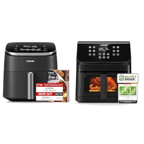 【Präzise Voreinstellungen – für Geschmack auf allerhöchstem Niveau】 Die innovative, von COSORI entwickelte DC-Aggregat-Heißluftfritteuse ist mit fünf Geschwindigkeitsstufen ausgestattet, die präzis auf die jeweilige Kochfunktion harmonisch sind; Optimierte Lüfterseiten und Grillscheiben ergänzen die Heißluftzirkulation um bis zu 28 Prozent und sorgen so für noch gleichmäßiger gegarte und noch knusprigere Ergebnisse