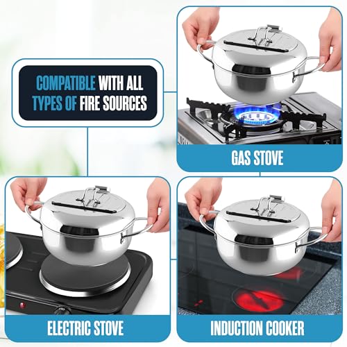 EIN BENUTZER FREUNDLICHES DESIGNIUM–Dieser frittiertopf-Topf wird mit einem Streu regal geliefert, mit dem Sie das Essen nach dem Braten zum Abseilen von Ersatz öl platzieren können. Das Rack ist für eine einfache Reinigung abnehmbar. Es gibt einen kleinen V-förmigen uf, mit dem Sie leicht Öl gießen können, ohne zu verschütten