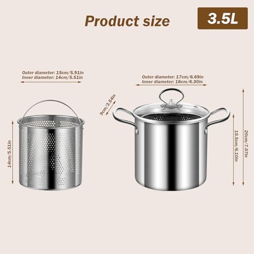 Frittie-Pot mit Korb, 3,5-l-Frittiertopf Edelstahl kleine Fritteuchsen mit Anti-Scenen-Griff Fisch Friteuchentopf und Korböl Fritteuse für Chips, Pommes, Hühnchen, Friteuse Beschreibung: