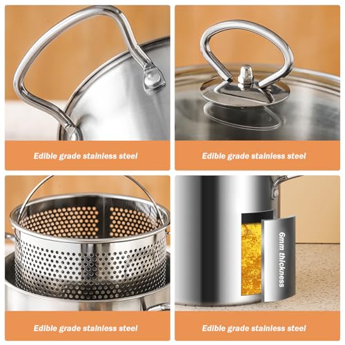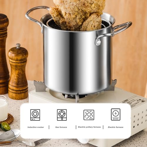 Der Frittierfitcy -Topf aus Edelstahl, der aus Edelstahl aus der Nahrungsgrenze gefertigt ist, bietet eine großartige Wärmeleitung und Langlebigkeit..Dieser Topf ist mit verschiedenen Brandquellen kompatibel, einschließlich Gaskocher, Induktionskochfeldplätzen und elektrischen Herden und ist eine vielseitige Ergänzung Ihrer Küche.