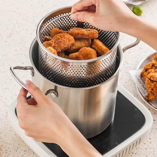 Vielseitiger Edelstahl -Fritteuse: Komplett mit einem Sieb und bequemen Seitengraden ist dieser kleine Frittierfitcy -Topf perfekt für die Zubereitung einer Abwechslung köstlicher Mahlzeiten, von Pommes Frites und Hühnchen bis hin zu Fisch, Donuts und Zwiebeln..Zusätzlich kann der kleine Topf darunter zum Kochen von Nudeln, zum Erhitzen von Milch und mehr verwendet werden.