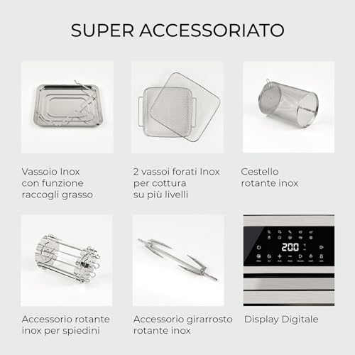 Multifunktional: Luftfritteuse, Frittieren, Backen, Grillen, Braten, Toasten, Entfrosten, Abtrocknen außerdem Wärmen.