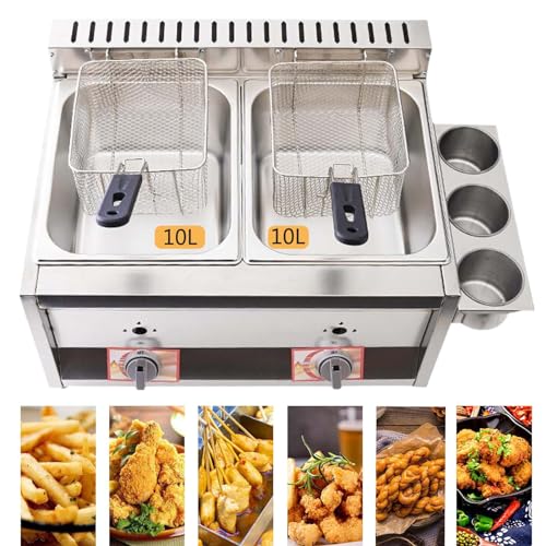 Anwendung: Gasfritteuse hat ein großes Fassungsvermögen von 2 x 10 Litern für eine breite Palette von Anwendungen! Sie kann sowohl zu Hause denn vulgo in Restaurants, Supermärkten, Fast-Food-Läden, Cafeterias usw. verwendet werden.