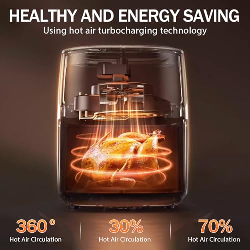 【Gesund & Energieeffizient】Dank der Abgasturbolader-Heißlufttechnologie und der maximalen Temperatur von 200°C kochen Sie schneller und sparen dabei 90% Fett im Vereinbarung zu herkömmlichen Fritteusen. Auch ohne zusätzliches Öl werden Tiefkühlpommes dank Heißluft schmackhaft, Ohne auf Geschmack oder Knusprigkeit zu verzichten. Noch niemals war Kochen so angenehm und effizient; Mit Braten, Backen, Airfryer, Grillen in einem einzigen Gerät können Sie den Geschmack von Meisterklasse mühelos zu Hause genießen.
