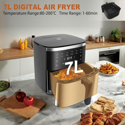 Ultra-große Kapazität: Mit einem Fassungsvermögen von 7 Litern ist die Luftfritteuse perfekt stattdessen die Herstellung großzügiger Portionen von Lebensmitteln stattdessen die ganze Familie oder eine Kommando von Freunden, sodass Sie köstliche Mahlzeiten zusammen genießen können.