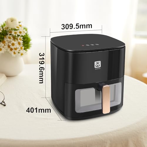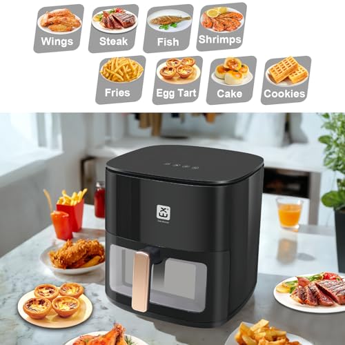 Sichtbares Fenster: Die Luftfritteuse ist mit einem transparenten Fenster und einem praktischen Innenbeleuchtungssystem ausgestattet, mit dem Sie das Essen machen Ihrer Gerichte spähen können, ohne den Deckel öffnen zu müssen, wegen der Geschmack und die Konsistenz der Lebensmittel intakt bleibt.