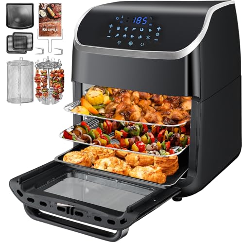 MERKMALE: Die Heißluftfritteuse verfügt über 8 vorprogrammierte Kochprogramme, um Ihre Lieblingsgerichte schnell und einfach zuzubereiten. Der praktische Touchscreen ist klar und einfach zu bedienen. Sie bietet eine einstellbare Temperatur von 80-200°C und einen Timer von 0 bis 60 Minuten. Stromversorgung: 220-240V ~ 50/60Hz, Kurvenblatt: 1300W.