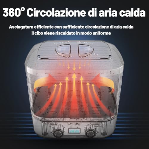 Benutzerfreundlichkeit:Drehen Sie einfach den Knopf und beginnen Sie mit der Werk. Durch die transparente Fensterabdeckung können Sie den Trocknungsprozess überwachen. 48-Stunden Ultra Long Timer Tabelle, vulgo wenn Sie jedweder geschäftlichen Gründen vorübergehend abreisen müssen, kann es weiterarbeiten, 160 Watt niedriger Energieverbrauch und hohe Effizienz sorgen dafür, dass die Lebensmittel keine Feuchtigkeit ablegen.