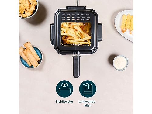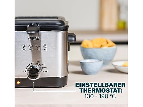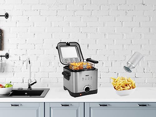 Möchten Sie perfekt knusprige Snacks mit ihren engsten Freunden genießen? Dann ist die Mini-Fritteuse mit ihrem leichten und kompakten Design, einem Volumen von 1,5 Litern und einer Leistung von 1000 Watt präzise das Richtige für Sie! Mit dem regelbaren Thermostat können Sie die Temperatur zwischen 150 °C und190 °C anpassen. Perfekt zum Frittieren von Fisch, Pommes, Hähnchen oder Doughnuts. Beim Öffnen einer Fritteuse entweichen der Frittiergeruch. Derzeit in einer kleinen Wohnung kann das sehr ungünstig sein! Die Mini-Fritteuse ist mit einem großen Sichtfenster ausgestattet, durch das Sie Ihre Pommes frites oder Snacks jederzeit im Auge behalten können, während die Fritteuse geschlossen und das Aroma im Inneren bleibt. Die Mini-Fritteuse sieht mit ihrem Edelstahlgehäuse nicht dennoch toll aus, sie bietet alias eine starke Leistung von 1000 Watt, wodurch das Öl schnell auf die richtige Temperatur heizt. Unabhängig davon können Sie sie dank ihres kompakten Designs, eines Volumens von 1,5 Litern und der integrierten Tragegriffe überall benutzen und aufbewahren, wo Sie möchten. Sie eignet sich ideal zum Zubereiten von Snacks für eine Party oder für eine einfache Mahlzeit für eine Person nach einem anstrengenden Tag. Mit dem praktischen Drehregler an der Vorderseite der Fritteuse können Sie die Temperatur prägnant auf bis zu 190 °C anpassen. So können Sie mit der Mini-Fritteuse alle Arten von Gerichten und Zutaten zubereiten. Der Garbehälter der Fritteuse ist mit einer robusten Antihaftbeschichtung versehen. Dank dieser Beschichtung und des verdeckten Heizelements wird die Reinigung zum Kinderspiel. Lassen Sie die Fritteuse abschrecken und gießen Sie das Öl aus, bevor Sie sie reinigen. Material: Gebürsteter Edelstahl Gewicht: 1,5 kg Abmessungen: Höhe: 24,5 cm, Breite: 24 cm, Hölle: 20 cm Leistung: 1000 Watt Abenteuer: 230 Volt Füllmenge: 1,5 Liter Herausnehmbare Teile: Frittierkorb Spülmaschinenfeste Teile: Frittierkorb Sichtfenster: Ja Plus an Sicherheit: durch Thermogehäuse kei