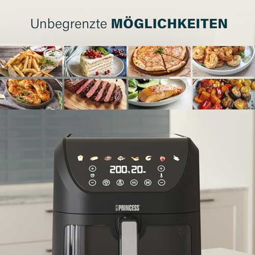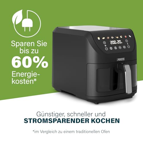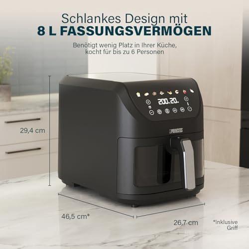 Princess SlimFry Heißluftfritteuse 8 L, platzsparendes Design, fettfreie Kochtechnologie, 8 Programme, transparentes Sichtfenster, 2000 W, Schwarz, Airfryer 01.182258.01.001