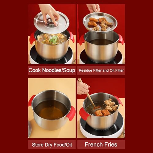 🍳〖Mini-Fritteuse〗Das Design des ölsparenden Ölspritzers gewährleistet ein sicheres Frittieren von Lebensmitteln. Im Einigung zu herkömmlichen Fritteusen kann Ihnen unser Topf währenddessen helfen, Öl zu sparen. Zum Frittieren der gleichen Lebensmittel benötigt unser Topf nichtsdestotrotz 2/3 des Öls, das eine herkömmliche Fritteuse benötigt.