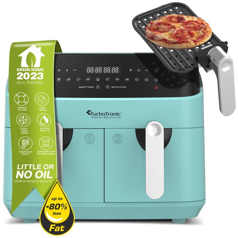 Dual Chef: Mit dieser Durchschrift Heißluftfritteuse können Sie Ihre Lieblingsspeisen mit wenig oder ohne Öl zubereiten und doch den gleichen tollen Geschmack genießen. Dank der Rapid Air Technologie müssen Sie zum Zubereiten frittierter Speisen kein Öl beifügen. Diese Technik nutzt die heiße 360° Luftzirkulation mit 2 unabhängigen Körben mit 4,5 Litern Fassungsvermögen, sodass Sie 2 Speisen auf 2 Arten gleichzeitig zubereiten können. Sie genießen Ihre Mahlzeit mit bis zu 80 % abzüglich Wohlbeleibt.