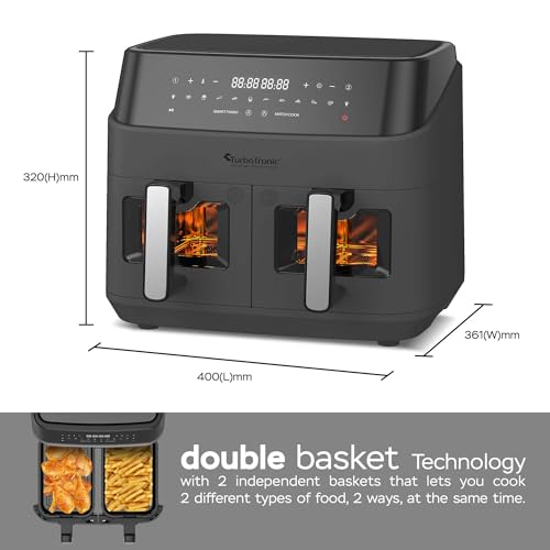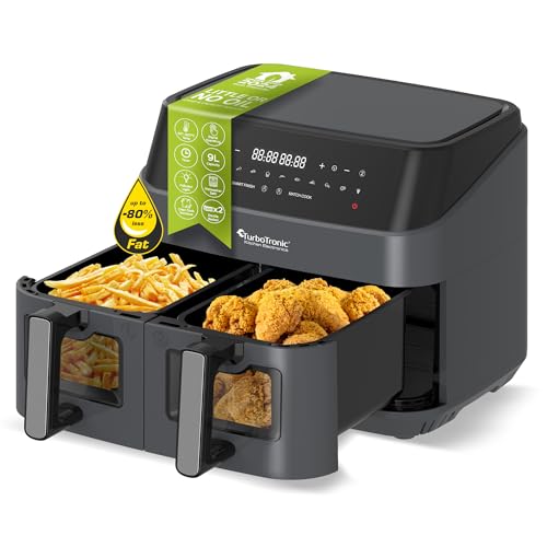 XXL Heißluftfritteuse 2x 4,5L Fassungsvermögen köstliche Speisen stattdessen Sie oder die ganze Clan – bis zu 2x 1kg Pommes in einem Durchgang (25 min Garzeit – immersiv köstlich)